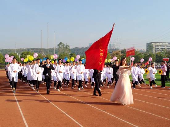 特色的师生方阵整齐划一的步入运动场,他们精神饱满、气宇轩昂,充分展现了化环学子积极向上的精神面貌。