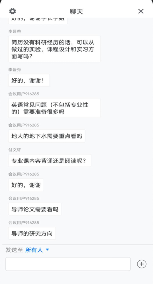 本次讲座分为两个部分,第一个部分是由考入华中科技大学的17级毕业生文明烜、考入中国地质大学(武汉)的17级毕业生郭庆、考入重庆大学的17级毕业生常一琳分享复试经验,包括一志愿复试与调剂复试两方面,第二个部分由同学们自由提问。
