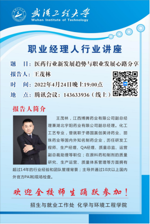 邀请湖北宇阳药业有限公司副总经理王茂林通过线上“腾讯会议”方式召开就业指导讲座,515足球直播