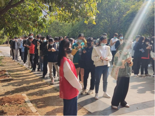 党委的统筹安排下,15名学生党员投身学校疫情防控一线,参与常态化核酸检测志愿服务工作。