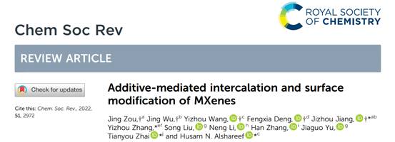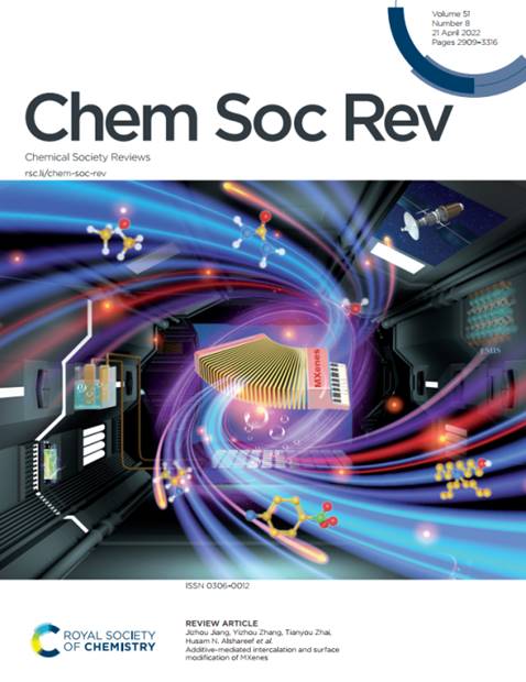 本网讯(通讯员程然)近日,国际顶级学术期刊《Chemical Society Reviews》(IF=54.564)报道了我校邹菁/江吉周教授团队在二维纳米材料领域取得的新进展:《Additive-mediatedintercalation and surface modification of MXenes》。这也是武汉工程大学建校以来发表在该期刊上的第二篇封面成果,第一篇封面成果发表于2019年,第一作者为江吉周特聘教授。