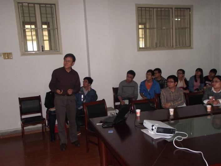 杨博士在报告上介绍了新型纳米碳材料的类型,湿法和种子成核法制备金属纳米材料,同时展示了在碳纳米管、石墨烯等碳材料上沉积金属纳米粒子薄膜修饰电极,并介绍了这些电极在环境激素检测、生物传感、以及对液体燃料的催化氧化等方面的应用。会上还提供了许多留学基金的申请的渠道。报告通俗易懂,师生热情高涨,稇载而归。