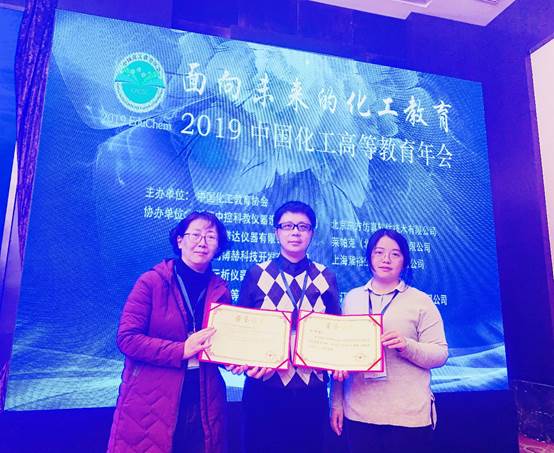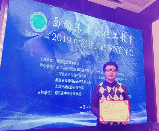 陈嵘教授个人获得“教学名师”,陈嵘教授负责的“应用化学专业建设教学团队”获得“优秀教学团队”。中国化工教育协会长郝长江在大会现场为陈嵘教授颁发了相关荣誉证书。