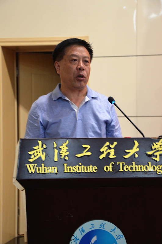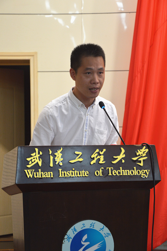 教师代表、武汉工程大学教学名师袁华教授讲话,他殷切鼓励全体新生在新起点上付出新努力、用自己的勤奋拼搏去实现个人的青春梦想。