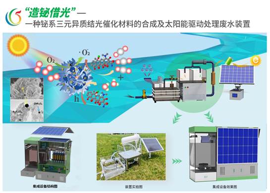 为解决环境污染物减量排放和能源利用问题,本项目将半导体光催化和光伏发电技术相结合,应用于污染废水处理中,在较温和的条件下依靠太阳能实现有毒有害难生物降解废水的处理,解决了传统污水处理能耗高、处理不彻底、易产生二次污染等问题。本项目开发的铋系光催化材料具有制备方法绿色简便、催化活性高、成本低等优势,在各类有机废水净化处理中均有较好的效果。基于该光催化剂设计的光伏发电和污染废水降解一体化装置可实现太阳能驱动,符合绿色环保的工作模式。该光催化材料及一体化废水处理装置相关技术不仅能用于制药、养殖、医疗、印染等行业难降解有机废水的预处理或深度处理环节,也可用于微污染自然水体的净化处理,且能够高效利用太阳能缓解能源紧张问题,符合可持续发展的理念。