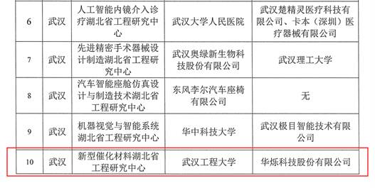 年湖北省工程研究中心认定名单,我校申报的