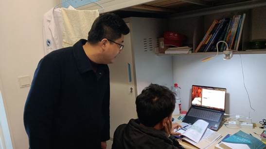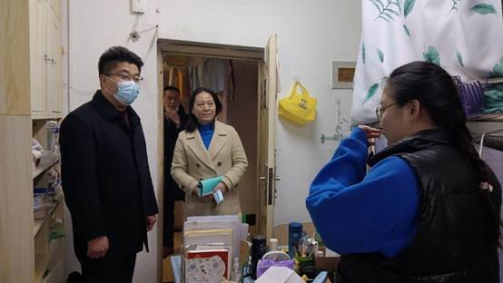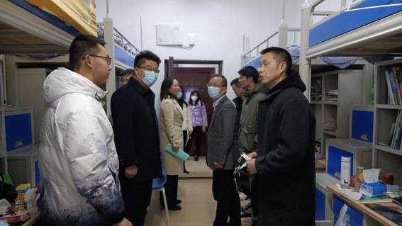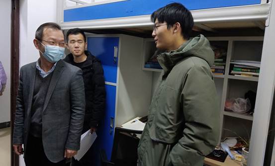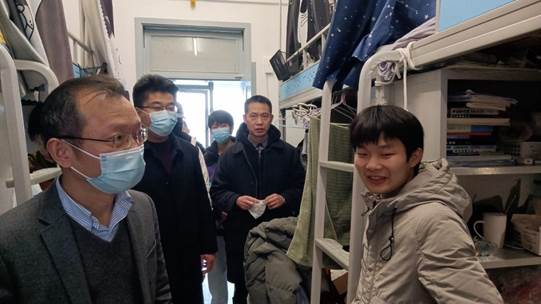 党委书记张宗良、党委副书记许守飞、副院长董志兵、王营茹及全体辅导员前往学生宿舍,走访慰问返校学生,了解假期动态、关心日常生活学习。