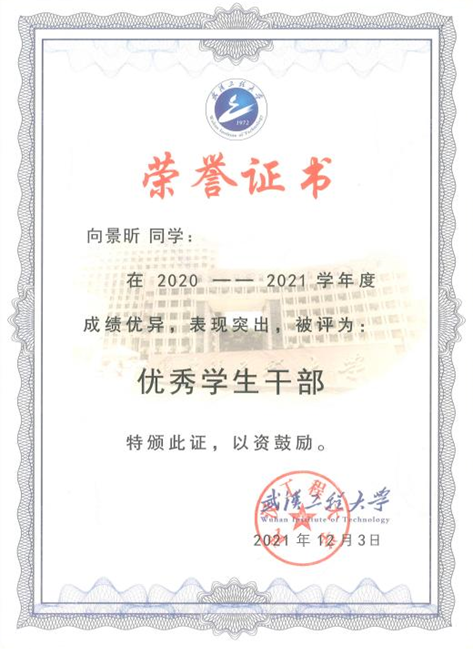 的记录册上,更多的化环学子将不负韶华,不负时代。他们将秉承武汉工程大学“格物明理、致知笃行”的校训,以青春之我,创造青春之中国,展望前路,豪情满怀。(审稿 许守飞)