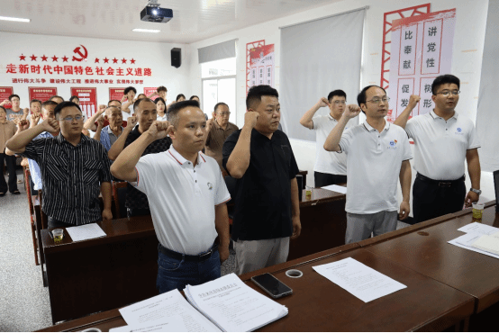 主题党日在雄壮的国歌中拉开序幕。全体党员举起右手面向党旗,庄严地重温了入党誓词,誓言铿锵,激荡着坚定的信仰,汇聚起前行的力量。