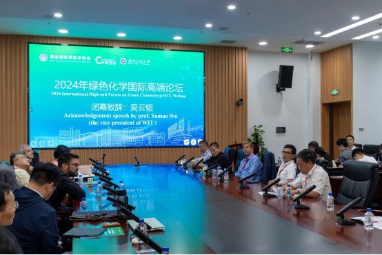 董志兵教授主持,武汉工程大学副校长吴云韬在闭幕致辞中表示,本次论坛是落实党和国家坚持创新驱动发展、推进产教融合以及教育国际化等发展战略的具体举措,也是化学学科在产学研用交流、合作和创新方面的一次生动实践。他代表大会组委会向所有会议组织者、工作人员和志愿者表示衷心感谢,期待与会者将论坛的收获带回各自的科研岗位,进一步推动绿色化学的发展,并希望与会专家学者在未来再次到武汉工程大学交流指导工作。