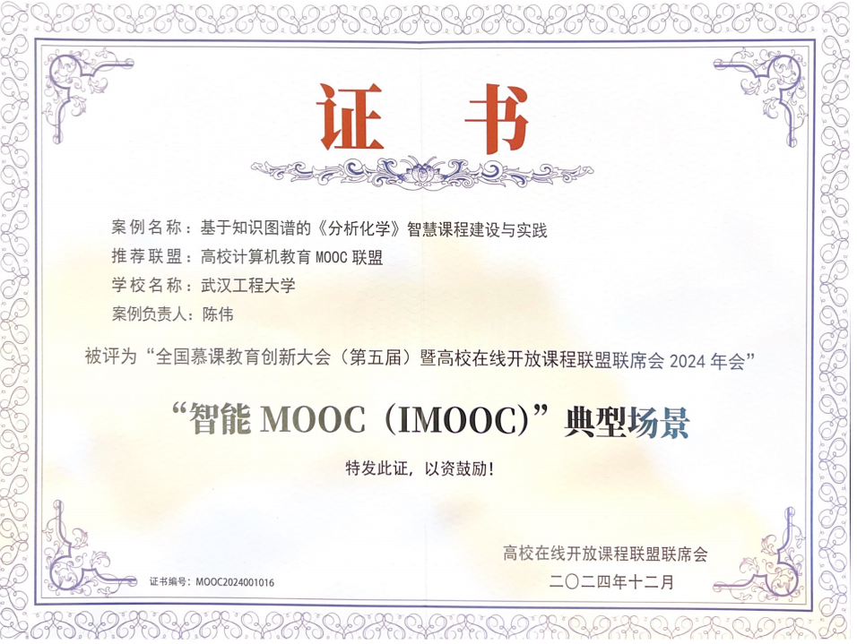 (通讯员 程然)12月22日,全国慕课教育创新大会(第五届)暨高校在线开放课程联盟联席会2024年会在青岛召开,我校“基于知识图谱的《分析化学》智慧课程建设与实践”案例荣获高校在线开放课程联盟“智能MOOC(IMOOC)”典型场景表彰,展现了我校在教育数字化领域的进展和成就。