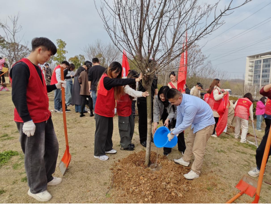 师生的积极参与表示肯定,并强调:“每一株树苗都是绿色校园的见证者,更是师生情谊与奋斗精神的象征。”