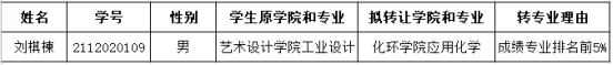 根据《武汉工程大学本科生专业调整暂行规定》文件有关规定和学校教务处《关于做好2021-2022学年第二学期普通本科生转专业工作的通知》的有关要求,拟同意刘棋棟同学转专业申请,现将名单予以公示。公示期:2022年6月10日~2022年6月16日。公示期间如有异议,请于2022年6月16日12:00之前向515足球直播 反应。联系人:仝老师,联系电话:027-87195727。515足球直播 2022年6月10日