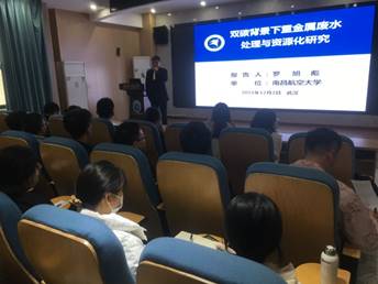 报告中,罗教授先对“碳达峰、碳中和”相关定义及国家政策背景进行了分析介绍,然后由此延伸到双碳与重金属废水处理之间的关系。从废水中络合态重金属的定向氧化、游离态重金属靶向捕获、回收金属产品的纯化增值三个方面阐述了如何实现碳负这一目标。随后罗教授就老师和同学们的疑惑和问题进行了交流和解答。