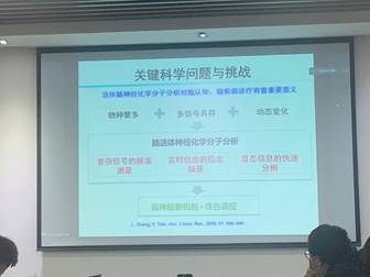 报告中,田阳教授由浅入深、旁征博引,就“脑活体神经化学分子分析的复杂信号的精准测量、实时信息的稳定捕获及暂态信息的快速分辨”等问题的探索过程进行了详细生动的介绍,分享了自己关于“高选择性自校准定量探针”、“比率型计量策略”等课题的思考与猜想。随后田阳教授就老师和同学们的疑惑和问题进行了交流和解答。
