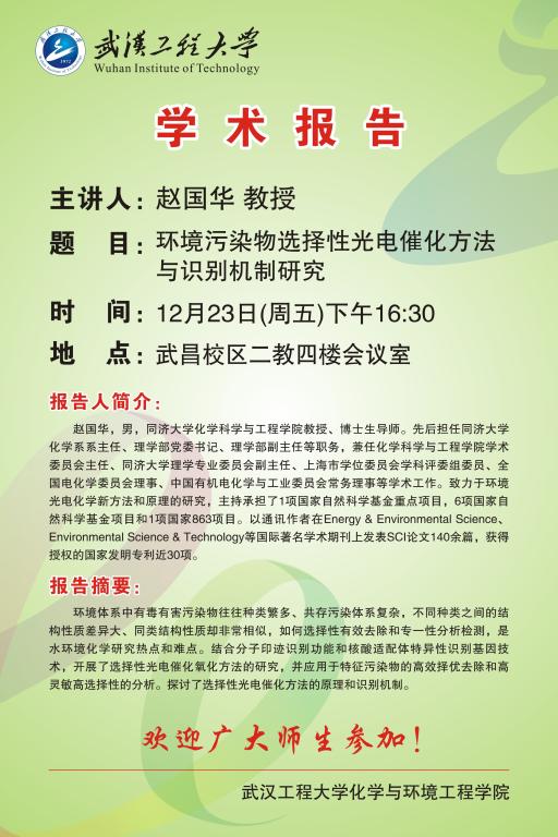 报告题目:环境污染物选择性光电催化方法与识别机制研究