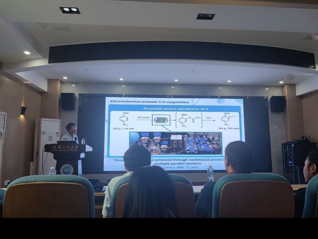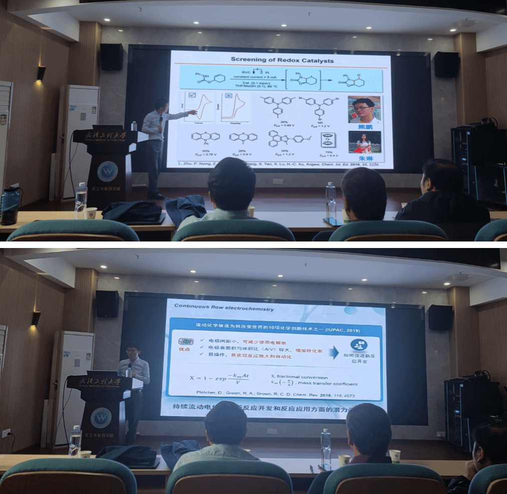 徐海超教授以电化学合成为主要内容详细向大家介绍了电化学反应的发展历史以及其所具有的独特优势,同时指出将电化学与分子光催化结合发展分子光电催化可充分发挥电合成与光催化的互补优势。随后,徐教授展示了课题组近期通过直接电解、分子电催化及分子光电催化产生各种有机自由基的方法及其合成应用。最后,徐教授介绍了课题组在持续流动电合成装置发展以及应用方面的新进展。